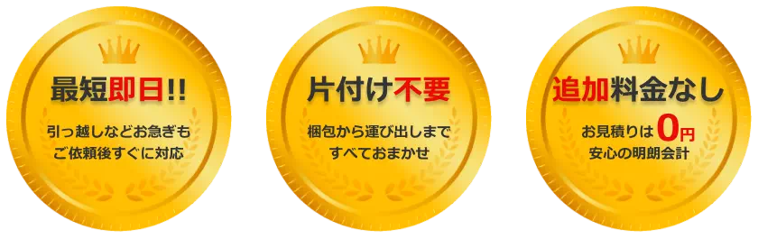 一軒家丸ごとの回収はもちろん、オフィスの移転や倉庫の在庫整理、工場の閉鎖に伴う大量の不用品も迅速に回収します。量を問わずお気軽にご利用ください。